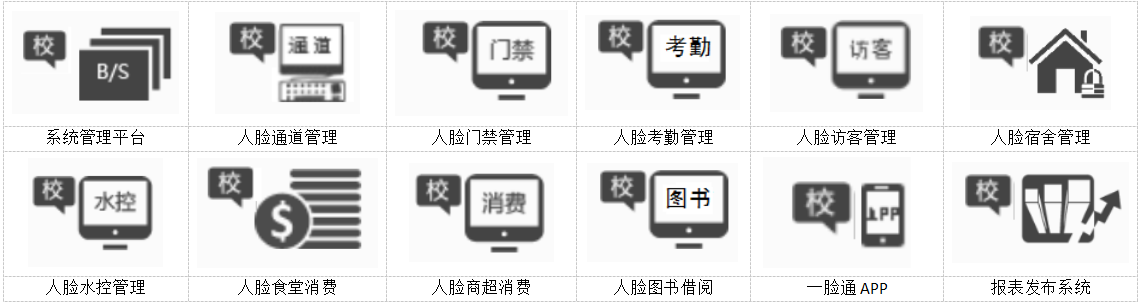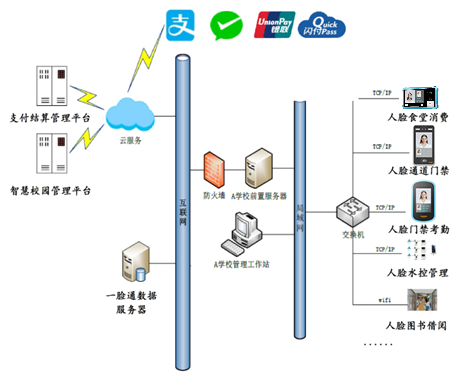 人脸识别智慧校园是我公司针对普教市场,借助当前人脸识别技术、人工智能、大数据、物联网、云计算、无线通信等新技术,推出的新一代校园管理系统,有效助力智慧校园、平安校园的建设。