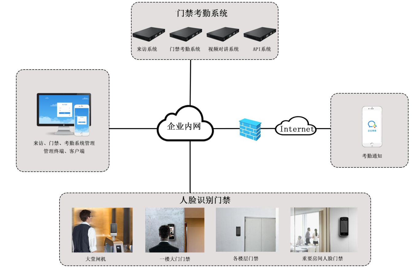 员工:通过员工APP拍照上传人脸信息,登记员工信息,注册成功后即可通过人脸识别出入指定通道,系统自动保存员工出入和考勤记录。