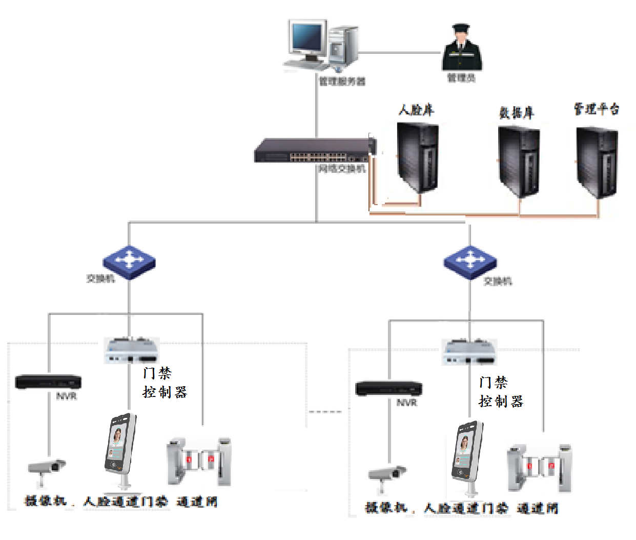系统是由人员侦测、视频监控、门禁控制、报警输出、视频输出相互协调,相互制约,实现出入口控制的人性化和智能化。