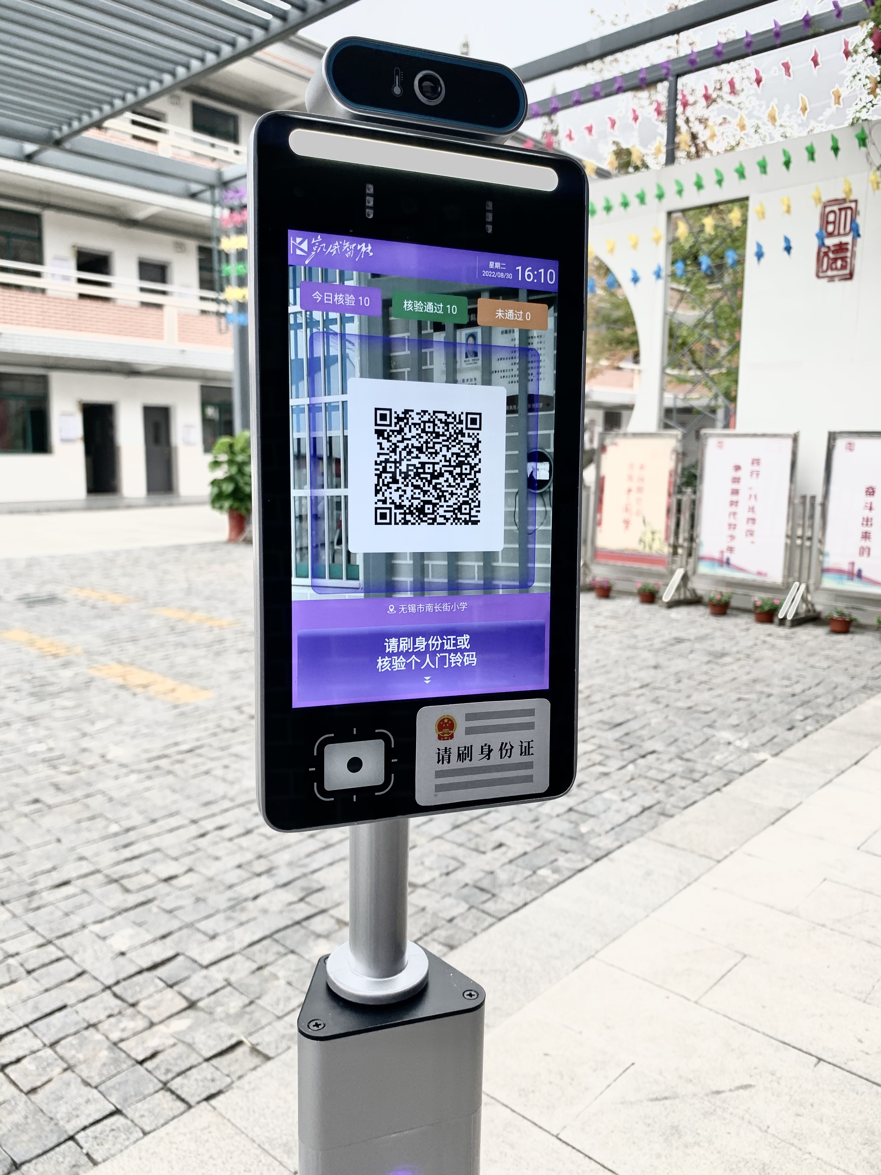 使用“数字哨兵”防疫一体机进行健康核验,进入公共场所的人员只需要打开灵锡APP中的个人门铃码或者刷身份证,就可以实时核验核酸筛查的结果和时间信息、人员身份比对是否一致、健康码是否正常等信息,并同步完成场所信息登记和体温的测量工作。