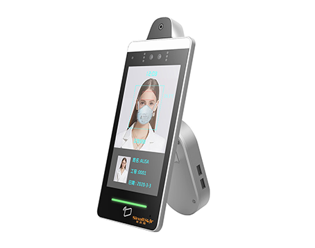 本产品可通过核对出入人员的面部信息来进行身份识别认证,实现人脸识别实名核验,支持带口罩人脸识别、智能补光、活体识别、红外热成像高精度人体测温、受理身份证、异常报警、触摸屏操控。广泛应用酒店前台人脸身份证比对等实名核验场合。